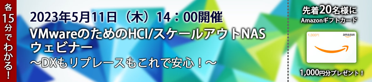 各15分でわかる!VMwareのためのHCI/スケールアウトNAS ウェビナー ~DXもリプレースもこれで安心!~