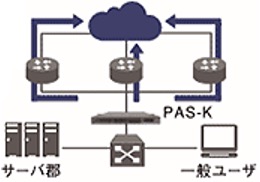 (グローバルサーバ負荷分散)外部から内部サーバにアクセスする時の回線をPAS-Kが選択し、特定回線に集中することを防ぎ、複数回線を効率的に利用できるサービス