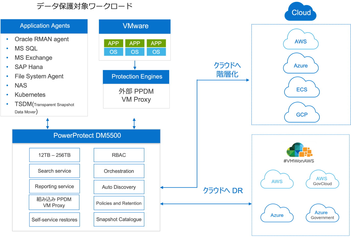 PowerProtect Data Manager アプライアンス(DM5500)は、容易に構成、管理できます。統一されたユーザー エクスペリエンスを提供し、データベース、VM、ファイル システム、Kubernetesコンテナの検出と保護を自動化します。