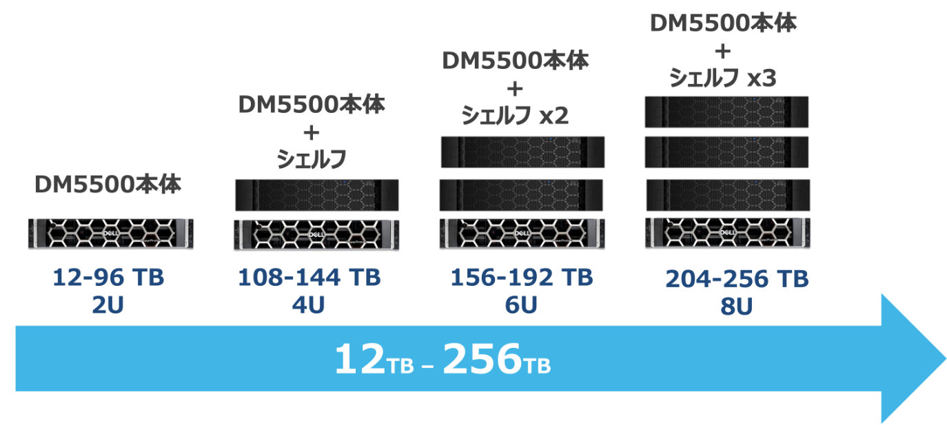 本体(DM5500)1台で12TBから12TB刻みで96TBまで構成可能です。
